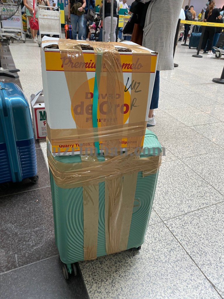 Unfortunately, I assumed that the 10 kgs referred to an aggregate weight. So on the flight back, as I was checking in, I presented my small suitcase and a box of pomelos Davao is famous for.